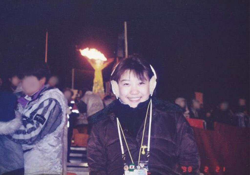 ▲1998年長野オリンピックにボランティアとして参加された際の栗栖さん。選手村の式典交流班として携わった
