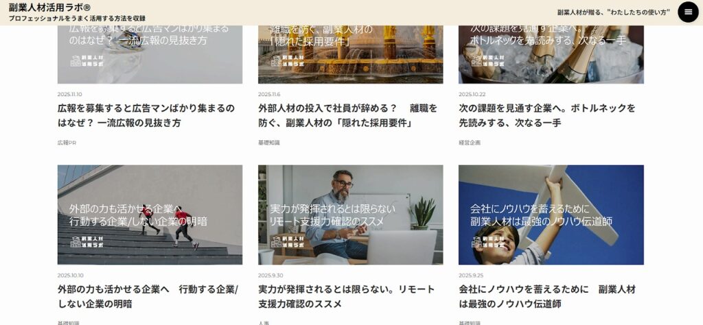 ▲経営者向けに副業人材活用術を提案している「副業人材活用ラボ」のオウンドメディア