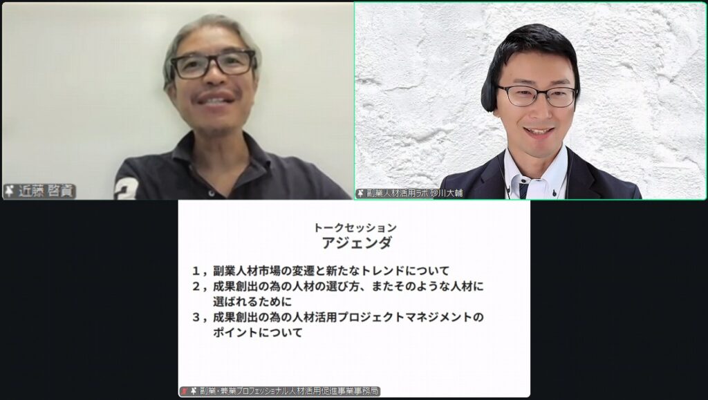砂川 副業人材の活用は、中小企業が優位に立てる数少ない市場だということです。有効に使えばこれほど力強い選択肢はありませんが、同時にリスクも存在します。そこをお伝えするのが私の講演での役割だと思っております。