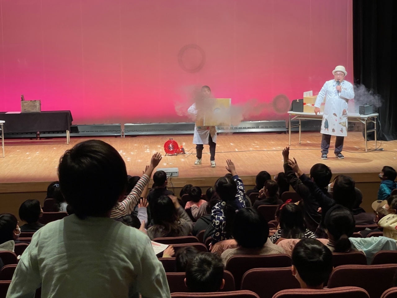 - 空気砲(サイエンスショー)で思わず立ち上がる子供達!