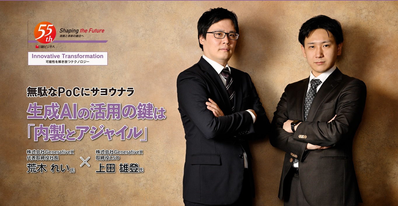 2023年6月に生成AIを用いたDXソリューションを提供する株式会社GenerativeXを共同創業し取締役CAIOに就任。国内大手企業向けの生成AIを用いた業務改革やアプリケーション開発、経営戦略の立案に注力。
